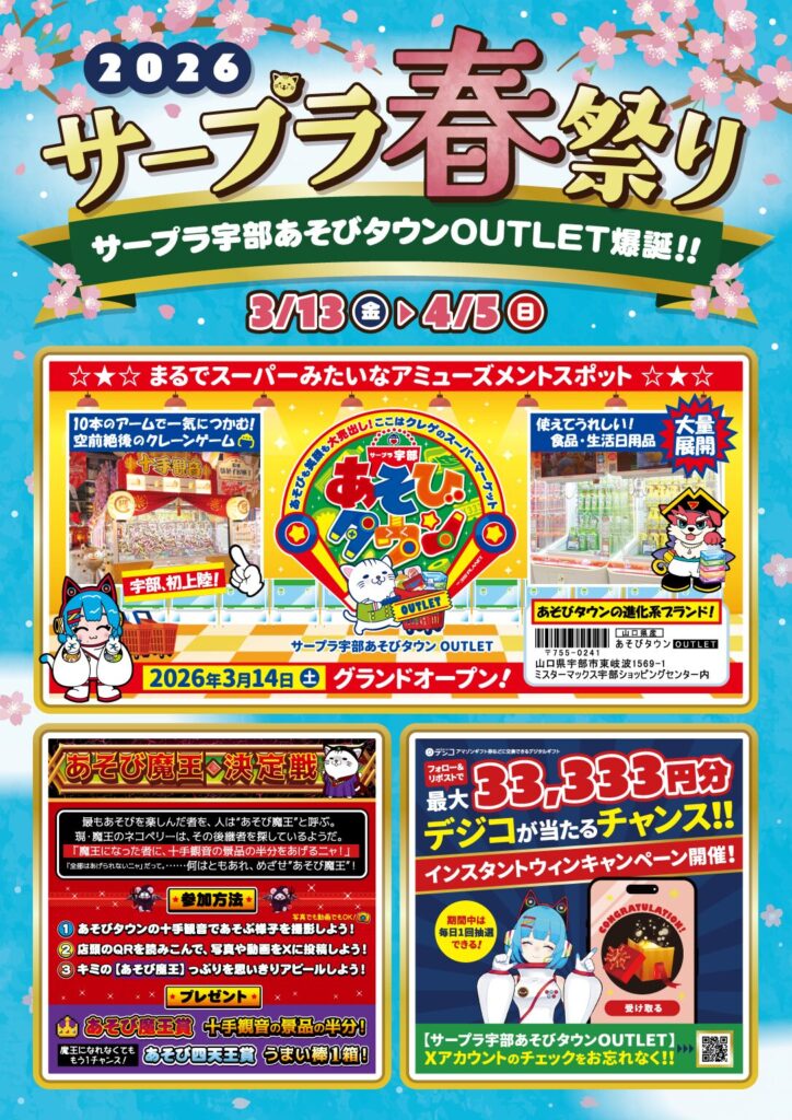 2026年3月14日星期六,我們將在山口縣宇部市開設「Serpla Ube Asobi Town Outlet」。