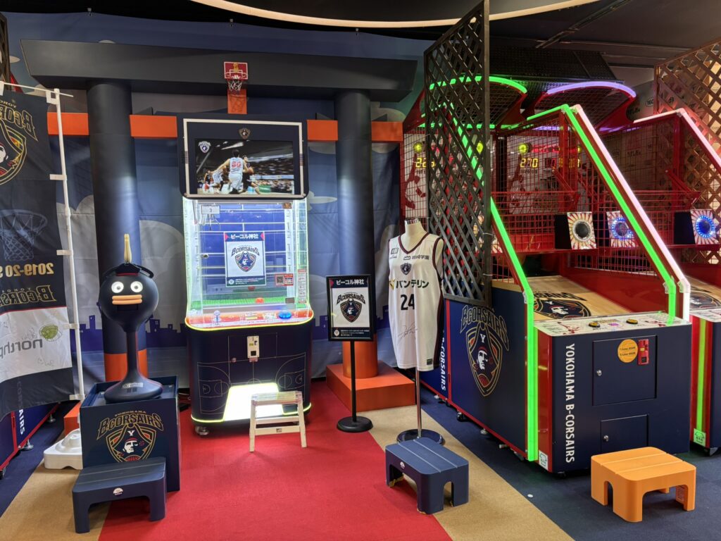 B-Corsairs神社是與橫濱麻遊町的當地職業籃球隊橫濱B-Corsairs聯手打造的。神社將以球隊的代表色藍色為主題!熟悉的Big Clappy也將以B-Corsairs的風格亮相!我們將全力以赴地為球隊加油!當然,附近還會有籃球比賽,祈禱勝利的同時,不妨也來體驗投籃的樂趣吧!