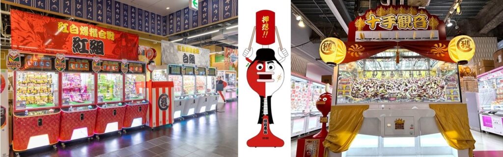 模仿熱鬧商店街的「抓娃娃機商店街」首先要推薦的是「紅白爆破抓大作戰」!橫濱阿索比鎮的歷史將翻開新的一頁!盤著完美蓬巴杜髮型的番長克拉皮首次亮相阿索比鎮!標示新手標記的抓娃娃機,成功率高,不容錯過!第二推薦的是格外引人注目的十臂抓娃娃機「十布特觀音」。這是阿索比鎮獨有的機器,一定要體驗一下!第三推薦是“十日元市場”,一個經濟實惠的十日元專區!這裡也是練習抓娃娃機的絕佳去處!不妨和孩子們一起體驗十日元抓娃娃機吧!